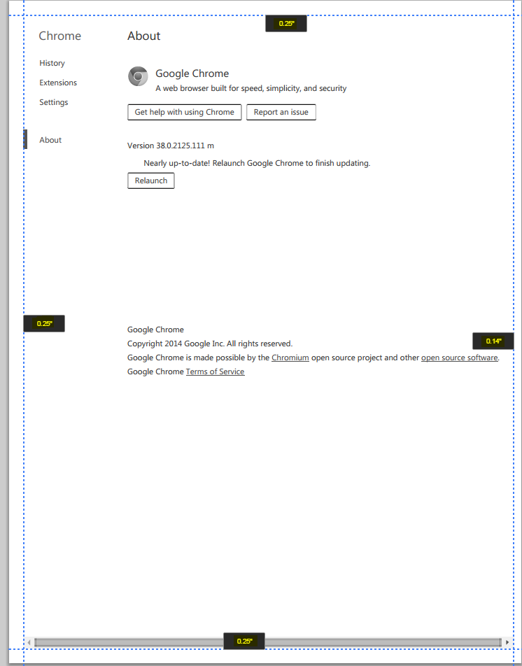 Set right page margin to: 0.14 and all other margins to 0.25 as highlighted below.